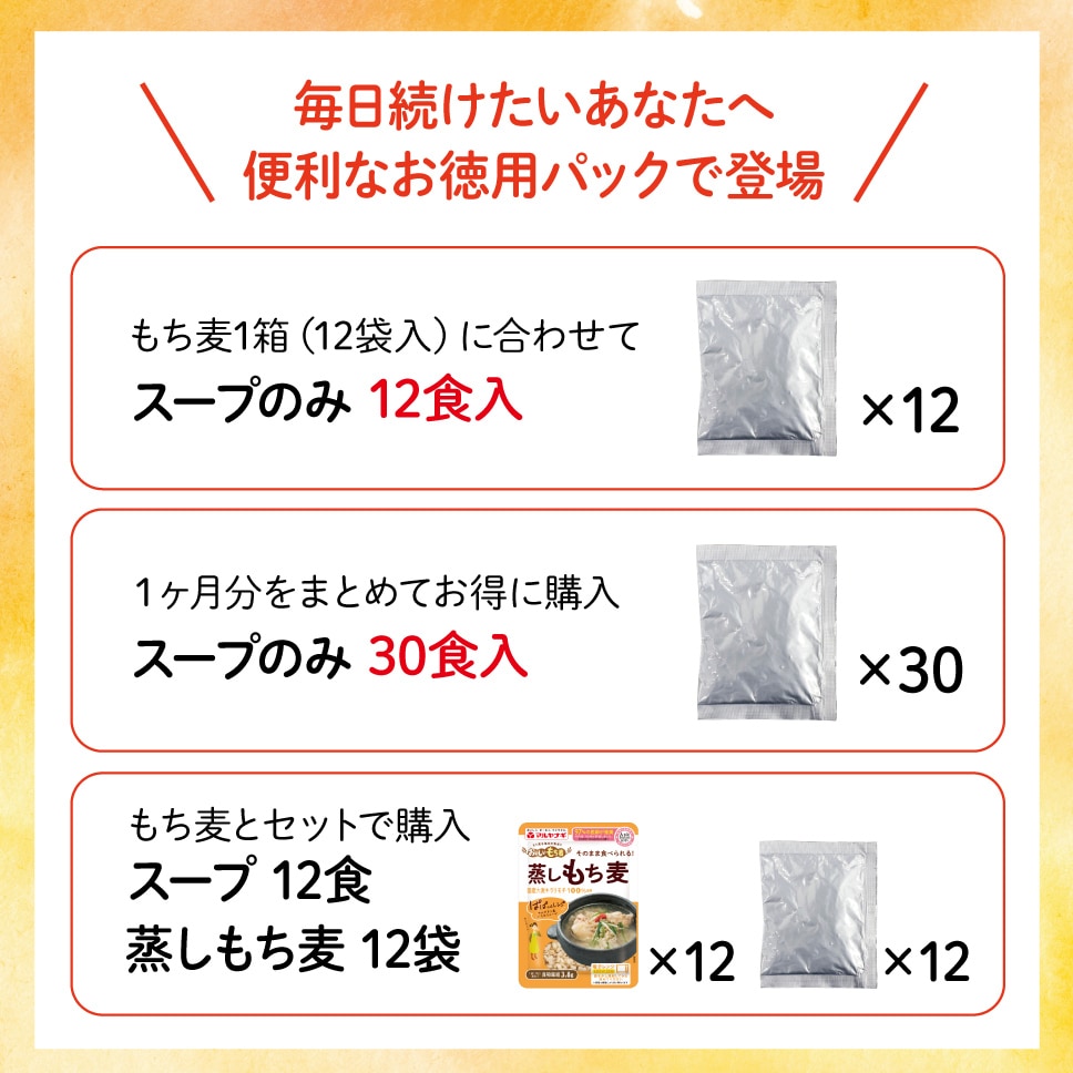 スープで食べるもち麦セット(スープ12袋・蒸しもち麦12袋)